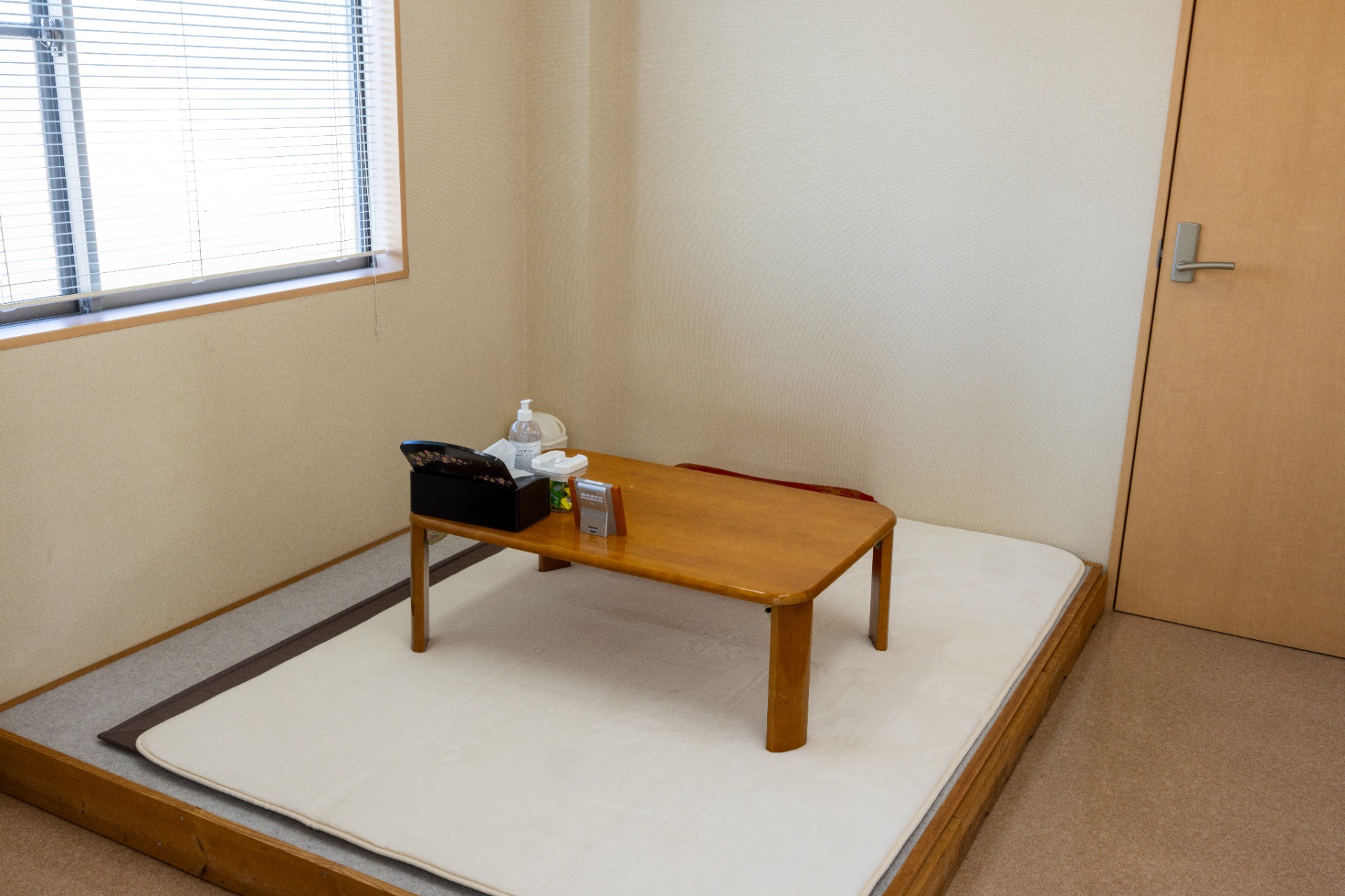 寺院様専用の控室を完備しています。お茶やお茶菓子もスタッフが対応いたしますので